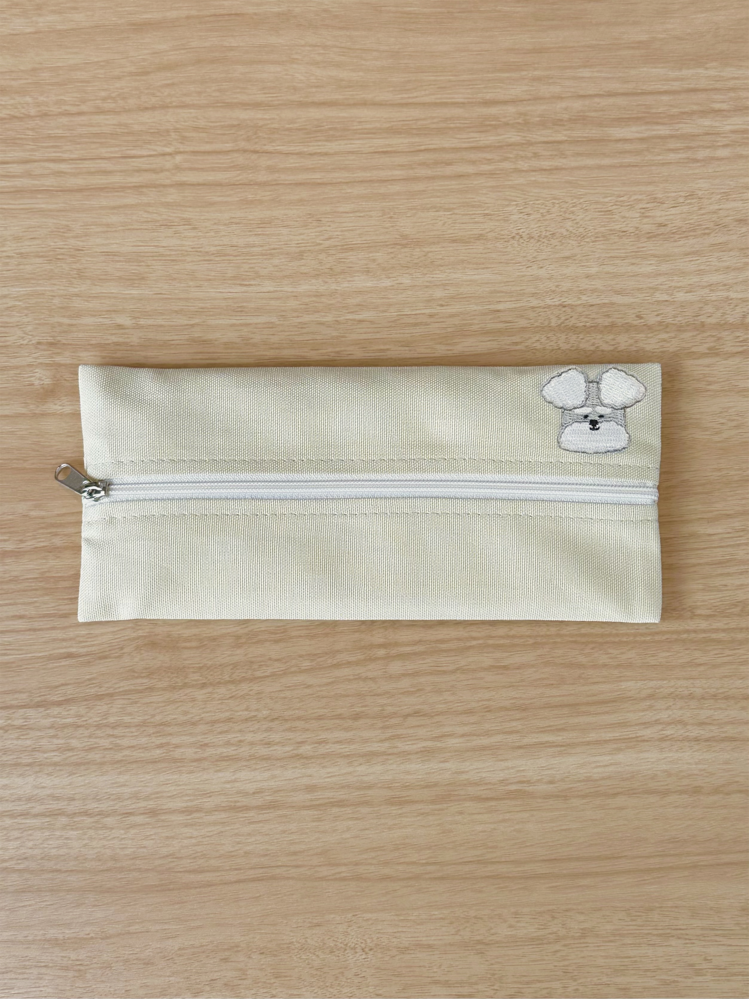 刺繍ワッペンが施された魅力満点の中央ジップペンケース