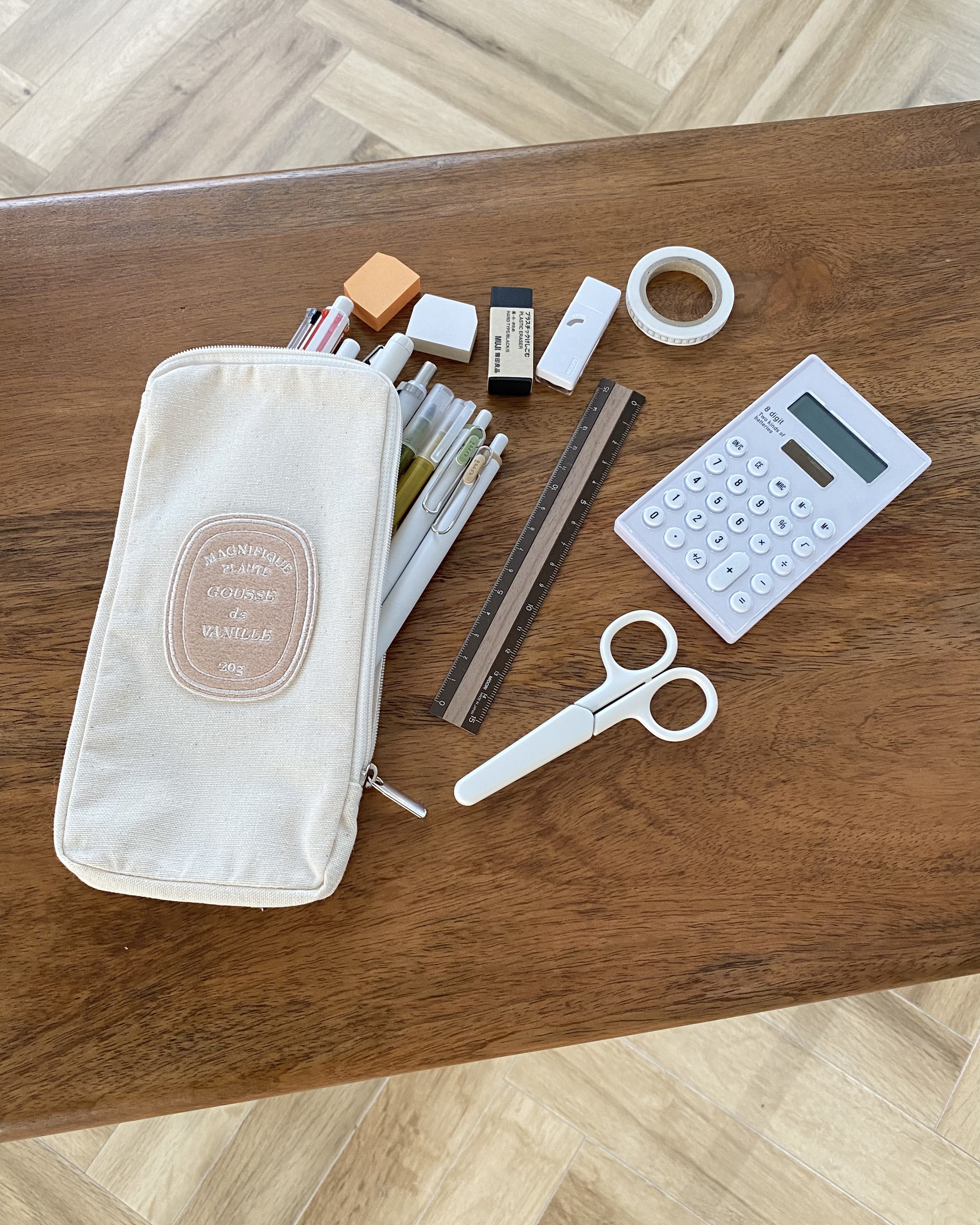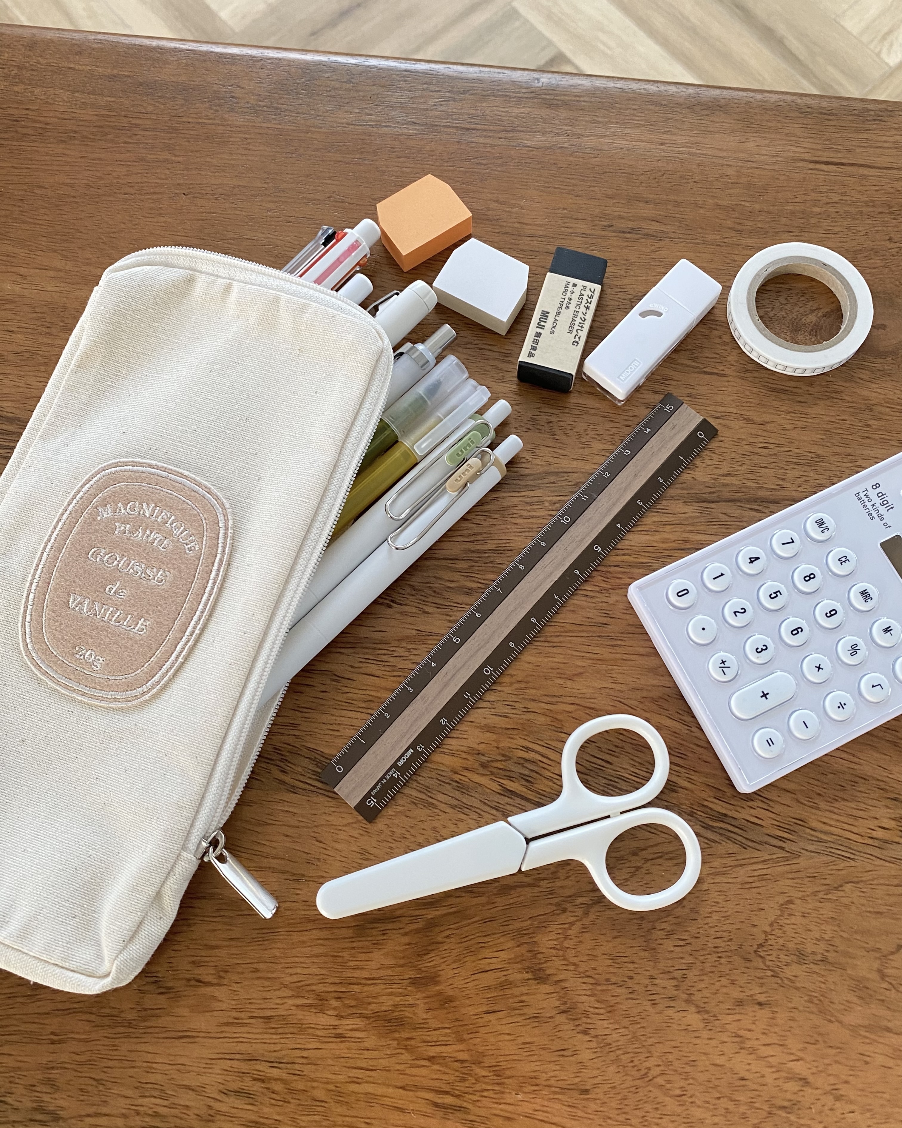 文房具はもちろん、(ハサミ、定規、メモ帳、電卓)などたっぷりたくさんと収納することが可能です。